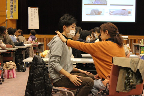 午後からは、エンゼルケアの基本手技及びエンゼルメイクの基本手技について、話していただきました。〈硬直解き〉〈拘縮解き〉は、研修生同士で実践をしたり、メイクも実際にモデルに行うことで、よく理解ができたと思います。